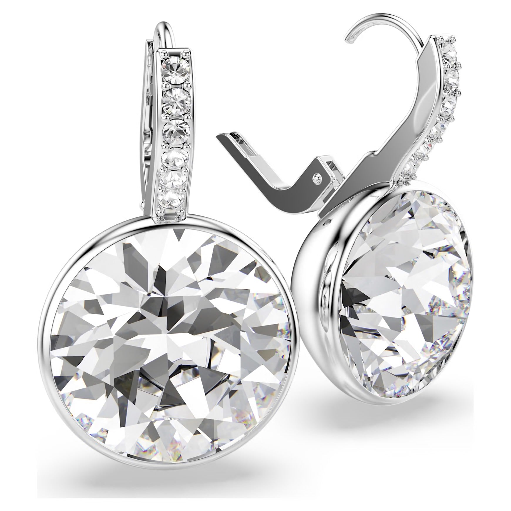The Celeste Diamond Drop Earrings feature a brilliant round-cut crystal suspended from a sleek pavé-set drop, designed to sparkle beautifully with every movement.