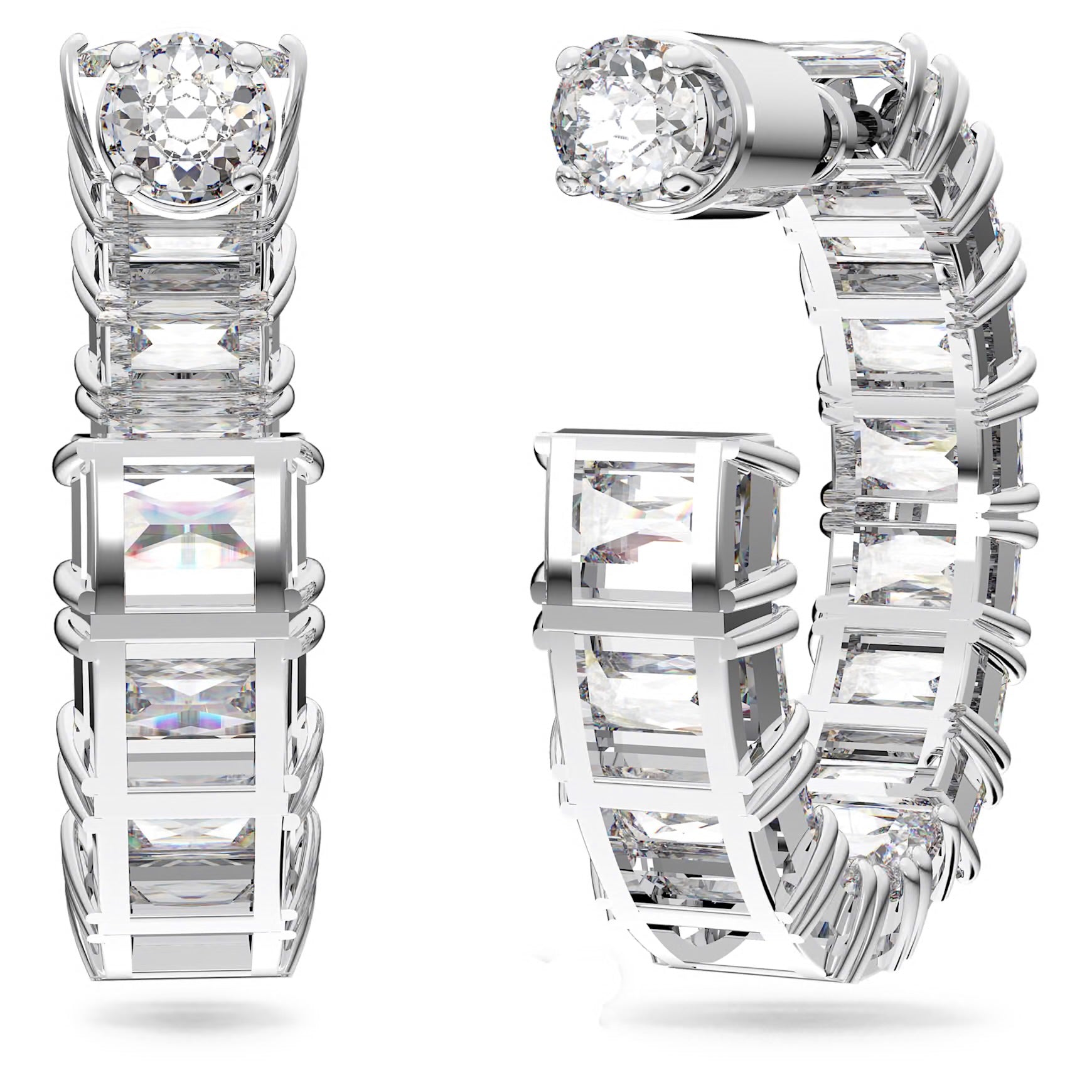Bold, radiant, and undeniably luxurious, the Luna Emerald-Cut Hoop Earrings are designed to turn heads. Featuring a full circle of precision-cut rectangular crystals, each stone is individually set to maximise brilliance and sparkle from every angle.